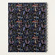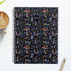 A gorgeous planner which has a pattern of delicate butterflies, mushrooms, crescent moons and botanicals in a dark palette of deep blue, purple, gold, red and green.