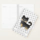 A ilustração original do desenho animado de Destei de um cão da raça casaco Chihuahua, preto e alto. Há também uma área de texto personalizável para um nome ou título. O fundo tem um padrão de cinza leve de estampas de pata de cachorro.
