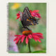 O surpreendente rabo preto do leste mostrando que é um belo padrão emperrado sobre um Sombrero Tres Amigos Cone Flower.