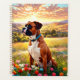 Cão boxer em belo campo de flores com pôr do sol. Puzzles, puzzles em latas, planejadores, cadernos com este design em minhas lojas. Adicione texto para personalizar.. Muitos desenhos de animais de estimação e paisagens em minhas lojas. Adicione este design a outros produtos. Adicione texto.