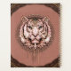 Captivação e representação artística do rosto de um tigre que impressiona com sua atenção aos detalhes. O foco principal é o tigre, que cava pelo em cor-de-rosa macio, decorado com padrões intrincados que ressaltam a beleza natural e a elegância do animal. Os olhos azuis brilhantes do tigre cativam o espectador, dando ao rosto uma intensa expressão de força e graça. No geral, esta design combina um simbolismo poderoso com uma paleta de cores suaves, fazer-a atraente e profunda.