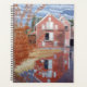 Pintura de uma casa rosa no rio Androscoggin no Maine durante o outono. A luz inclinada do final do outono projeta a sombra de um pinheiro na lateral rosa distinta da casa. Folhas marrons enferrujadas e grama de pântano amarela desbotada em primeiro plano destacam a clareza impressionante do reflexo vívido do edifício rosa no rio. Acima, um céu cinza-azulado sombrio prenuncia uma tempestade no final do outono, enquanto a casa e o primeiro plano são iluminados pelos últimos vestígios do sol pálido de outono.