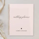 Notebook planejado para casamento, com design simples e moderno em fundo rosa-claro.
