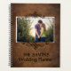 Planeje o seu casamento com esta capa rústica de couro sintético marrom com modelo de foto na frente e texto personalizado também. Desenhos elegantes e pretos em filigrana irão acentuar a sua foto.