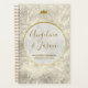 Caligrafia moderna, elegante, simples livro de planejamento de casamento de mármore cinza com monograma de coroa dourada - iniciais da noiva e do noivo.