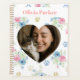 This beautiful spiral planner is the perfect gift for the ultimate cat mom! Customize the cover with three of your favorite photos—a cherished moment with your beloved feline and two individual portraits of your cats. The design features a delicate watercolor floral border in soft pinks, blues, and greens, accented by cute scattered paw prints.