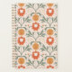 A seamless pattern featuring stylized sun faces, blooming orange flowers, curling clouds, and leafy green vines on soft beige background.