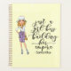Este planejador apresenta uma mulher elegante com o texto "Apenas uma menina chefe construindo seu império". Isso pode ser personalizado com seu nome em caligrafia elegante. Tem um fundo amarelo.