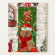 Cachorro Chow Sentado fora de casa decorada com coroa de Natal, árvore de Natal é uma ideia perfeita de presente de Natal para amantes de cachorros.