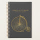 Este planificador de na moda apresenta uma bicicleta velha e antiquada de peny farthing em falso brilho dourado num fundo de cinza de carvão. Personalize-o com seu nome e título. ideia de presente de excelente!