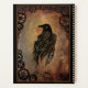 Raven no fundo do azulejo de pedra. Engrenagens de relógio por toda a fronteira.