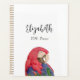 Topical parrot datebook planner, with a colorful macaw illustration and customizable script lettering. A great way to add a touch of the jungle to your school or office supplies.