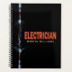 Planeador de negócios preto e branco moderno/ livro de compromisso projetado para eletricistas. Design apresenta fios elétricos, script de tipografia Serviços Elétricos em letras maiúsculas a negrito sobre fundo preto e nome em branco na frente. Personalize com mais detalhes na parte de trás do planejador. Para editar, clique nas caixas "Editar este modelo de design" no lado direito do item/ ou clique no botão azul "Personalizá-lo" para organizar o texto, alterar as fontes e cores e também adicionar informações ou imagens adicionais a este design.