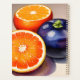 Essa pintura aquarela captura a beleza e a abundância das laranjas. As laranjas são renderizadas numa variedade de tons de laranja, de amarelo pálido a laranja profundo. As folhas são verdes e esbranquiçadas, e o fundo é azul macio.