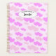 Sweet Planner coberto de corações cor-de-rosa com tamanhos diferentes em uma rosa claro de fundo em cobrir frontal e traseiro. Um rótulo impresso com texto personalizável. Adicione seu nome para torná-lo pessoal. Organize sua vida e planeje seu ano. Um presente bonito e pessoal.