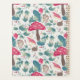 Um design com flores, belos coelhos, cogumelos, e muito verde.