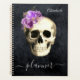 Planner Personalizado do Caveira Floral na moda e Chic Gothic. Design apresenta um crânio branco acentuado com rosas roxas lindas sobre um fundo de textura preta. Personalize-o com o seu nome. O título " planejador " escrito em um script estilo moderno, escrito à mão, com traços.
