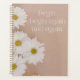 Minimalist 2026 Planner with fresh white daisy flowers on a soft beige background and the uplifting quote "begin. begin again and again." This clean, feminine design promotes resilience and new starts. Perfect for daily planning, mindfulness, and staying inspired all year long!