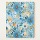 Bonito marfim e design abstrato de prado azul-margarida em um fundo azul macio.