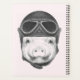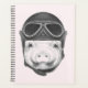 Este design apresenta um porco giro vestindo um capacete e óculos antigos.