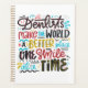 Esta mão desenhada apresenta a frase "Dentistas fazem do mundo um lugar melhor, um sorriso de cada vez".