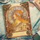 A capa deste planejador tem um cartaz vintage Art Nouveau da atriz Sarah Bernhardt. Ele trará um toque de arte autêntica Art Nouveau para sua casa ou escritório.