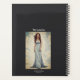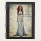 Um planejador personalizado do estilo de colheita de cinzas, diário com uma mulher bonito em um vestido azul. Uma ideia de presente de aniversário feminino.
