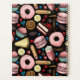 Padrão sem costura feito de várias sobremesas desenhadas à mão.