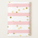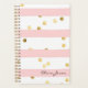 Um padrão divertido para meninas com listras brancas e cor-de-rosa horizontais com pontos ouros espalhados faz disso uma escolha bonita nos planejadores. Um modelo de texto na parte inferior do design soletra seu nome ou outro texto desejado. Simplesmente personalize o texto de exemplo como você deseja para um planejador personalizado para casa, escritório ou de volta para a escola.