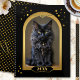 Um boho-chic design gold e um planejador de ano negro com um gato preto majestoso. No verso há um padrão de bolinhas com brilho dourado. Excelente para um amante de gatos.