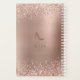 Planejador Anual Rose Gold Glitter Monogram Boss Lady 2025... O logotipo da sua monograma recebe as cores do foil metálico rose gold e do brilho cintilante rosa do fundo, criando um visual luxuoso e sofisticado para o seu planejador personalizado de 2025. Você pode facilmente alterar a inicial da monograma e substituir o título "Boss Lady CEO" por um nome no modelo de personalização. Na parte de trás do planejador está o logotipo do stiletto Boss Lady Rules na mesma cor rose gold escuro que a inicial da monograma.