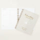 O design romântico apresenta uma flor floral macia em branco, "Future Mrs", e as palavras "Wedding Plan" numa escrita de tipografia de ouro contra um fundo texturizado bege. Personalize facilmente seus nomes e data de escolha. A ideia perfeita de presente para a futura noiva organizar todas as suas necessidades de planeamento de casamento.