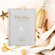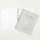 A design romântica apresenta uma flor floral suave em branco, "Future Mrs", e as palavras "Wedding Plan" numa escrita de tipografia de ouro contra um fundo texturizado de cinza de pomba. Personalize facilmente seus nomes e data de escolha. A ideia perfeita de presente para a futura noiva organizar todas as suas necessidades de planeamento de casamento.