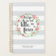 Nossa planejadora de motivação chica para mulheres e meninas que dirigem o mundo apresenta a citação "embora ela seja pequena, ela é feroz" em um roteiro de pincel manchado cercado por uma coroa aquática coroa coroa floral rosa e verde em um fundo listrado de cinza neutra. Personalize com o ano e seu nome, ou sua escolha de personalização.