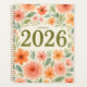 Pintura floral elegante em cor de pêssego e verde. Planejador floral personalizado de 2026.