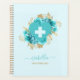 Um belo planejador de cor azul-lacrimogêneo com flores e padrões de folha de folha de ouro falsos. Excelente para profissionais de saúde e estudantes.