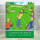 Imagem de golfistas em um campo de golfe. Cartoon engraçado do cartunista britânico Nigel Sutherland. Personalize com a sua escolha de redação. O cartoon principal é um golfista que tem seu tiro recuperando vários objetos.