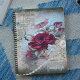 Amável, vintage, florais de rosa vermelha de jornal, apresentando um falso broche e colar de pérolas, gaiola de pássaros com arco teal para criar um estilo de luxo, extravagante, chique para planejamento.