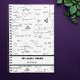Planeador de matemática preto e branco para professores e estudantes. O fundo tem um padrão de fórmulas e equações escritas manualmente. presente de excelente para graduações ou Natal. Ilustrada e projetada por Patricia Alvarez.