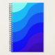 Agenda em espriral com adesivos com ondas do mar em toneladas de azul diferentes em degradade