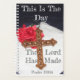 Um planejador com a imagem de uma cruz com rosas vermelhas e a legenda "Este é o dia que o Senhor fez." Este planejador fornecerá um lembrete diário para apreciar cada dia.