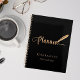 Um fundo preto chic, decorado com uma caneta de pena. Personalize e adicione um nome e ano. Texto do ouro: Planejador