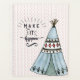 Ttenda do estilo Boho em azul com a cobertura de arte "Faça acontecer" em fundo de bolinhas sem som