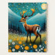 Veado bonito parado em um campo floral com montanha e pinheiros à noite. Personalize-o alterando o nome.