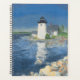 Planejador do Farol Grindle Point. Este planejador diário apresenta o Farol Grindle Point brilhando ao sol do final da manhã de um dia de primavera em Islesboro, Maine. A pintura usa uma paleta brilhante de azuis, verdes, cinzas e laranjas para criar uma vista linda e calma da torre única do farol quadrado e da casa do faroleiro.