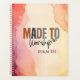Planejador personalizado retrata um fundo de cor d'água abstrato. Ele apresenta uma citação cristã inspiradora, "Feita ao Culto." Personalize a parte traseira com um nome e uma data ou detalhes da sua escolha.