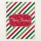 Ilustração feliz de Natal com texto e flocos de neve design em fundo listrado vermelho, branco e verde