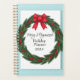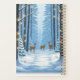 Um maravilhoso design de planificador com tema natalício com um cobrir de frente belamente detalhado com uma coroa festiva enfeitiçada com sagrada, bagas, e um arco vermelho, e uma pacífica cena da floresta nevada com cervos e luzes cintilantes no cobrir traseiro. Perfeito para ficar organizado durante o feriado.