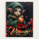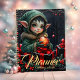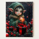 Filha de Elfo Bela em Casaco verde com Enfeites de natal - Design de Férias de Fantasia Mágica. Uma criança bonita de elfo com olhos grandes e ouvidos pontiagudos veste um casaco de capuz verde aparado e segura um Enfeites de natal laranja brilhante. Cercado por caixas de presentes com fitas vermelhas, ramos de pinheiros e bagas, esta cena mágica de feriado parece festiva e mística. A sombria estrutura de ornamentado com vista para uma floresta encantada torna este design perfeito para amantes da fantasia, fãs de Natal e arte mágica de férias.