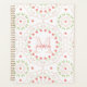 Um planejador de mandala cor-de-rosa floral na moda. Personalizado Personalizado com nome e inicial do monograma bonito. Mandala com flores bonito. Um design fofo e personalizado. Faz um presente maravilhoso. Este design cor-de-rosa-rosa branco tangente a mandalas florais apresenta uma geometria geométrica sagrada, design de meditação de chakra espiritual com um monograma, elegante roteiro, um excelente moderno, rosa-pincel, simples ideia de presente.